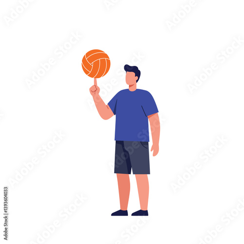 Fototapeta premium Young man spinning a volleyball on his finger in flat vector art