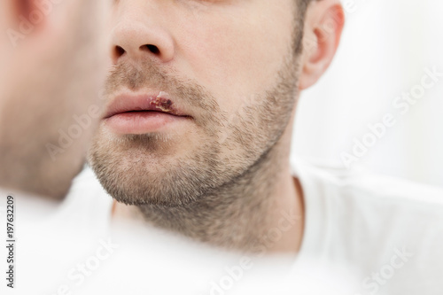 © and.one, Obraz premium Young man suffering from herpes on his mouth