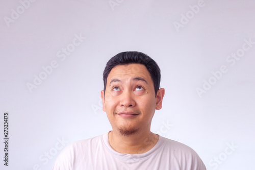 © airdone, Fototapeta premium Young Man Thinking and Looking Up, Having Good Idea