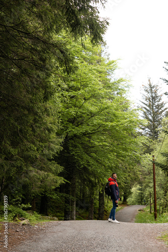 © Jenni Ventura Martil, Fototapeta premium Young man walking among trees in Norway
