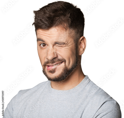 Fototapeta premium Young man winking an eye on background