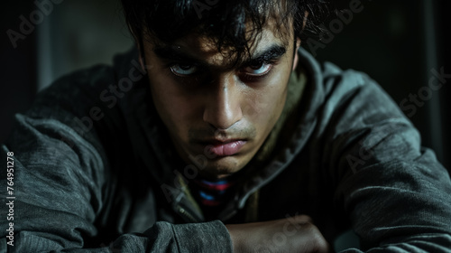 Obraz premium Young man with a brooding and intense look.
