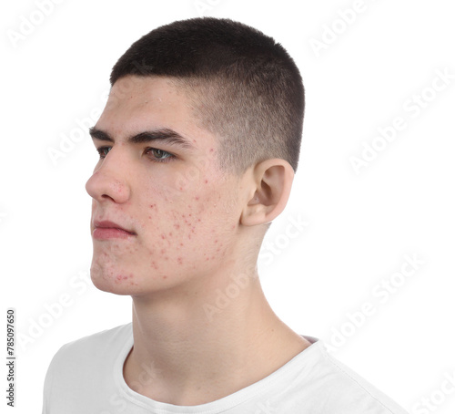 © New Africa, Fototapeta premium Young man with acne problem isolated on white