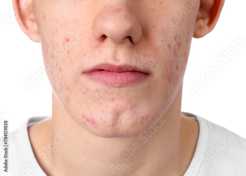 © New Africa, Obraz premium Young man with acne problem isolated on white, closeup