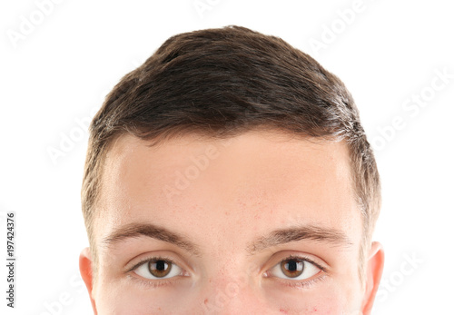 © New Africa, Fototapeta premium Young man with acne problem on white background