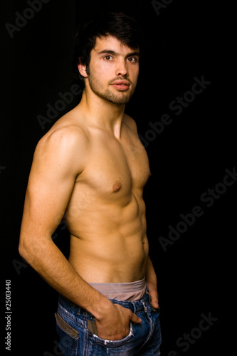 © cristovao31, Fototapeta premium Young man with atletic body on black background