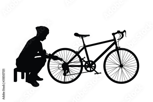 Obraz premium Young man with bike silhouette