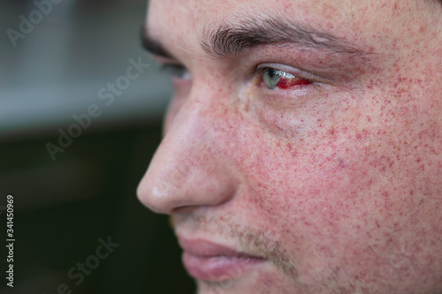 © Elantseva, Obraz premium Young man with bursting capillaries on his face