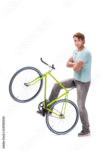 Obraz premium Young man with cycle isolated on white