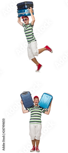 © Elnur, Fototapeta premium Young man with heavy suitcases isolated on white