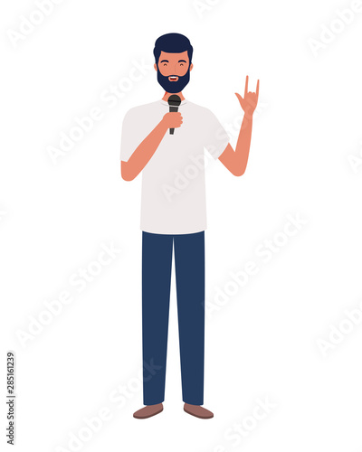 Obraz premium young man with microphone on white background
