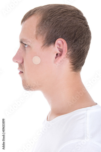 Obraz premium young man with plaster on his face isolated on white