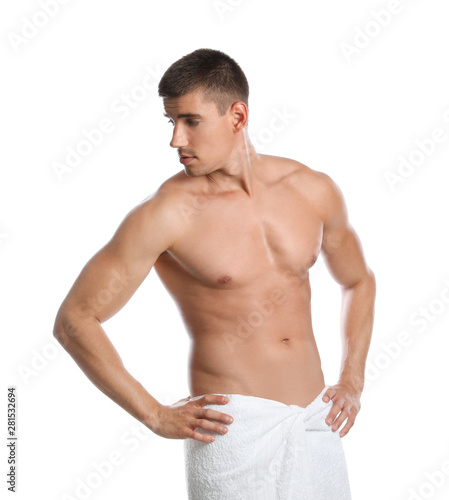 Fototapeta premium Young man with slim body on white background