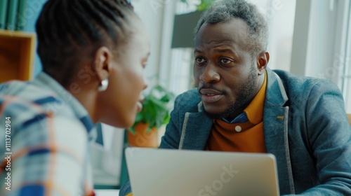 Fototapeta premium Young manager collaborates with experienced colleague on various projects.