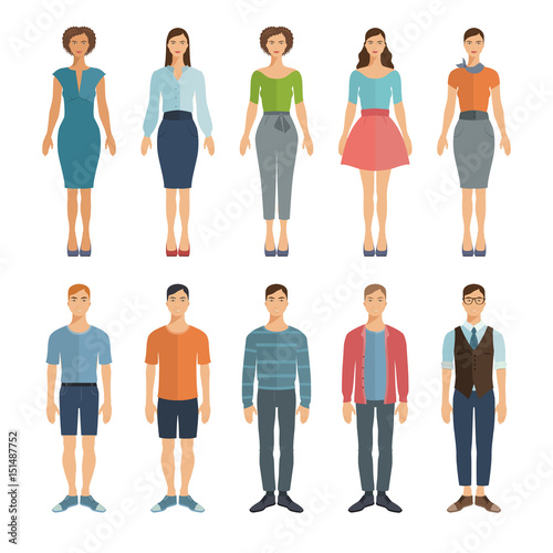Obraz premium Young men and women in flat style. Set of vector characters.
