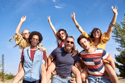Obraz premium Young men giving his girlfriends a piggyback ride