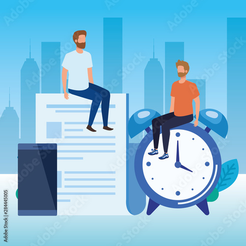 Obraz premium young men with alarm clock
