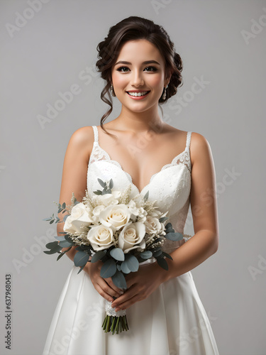 Naklejka premium young middle age happy smiling bride wearing bridal dress, bridal frock, wedding dress