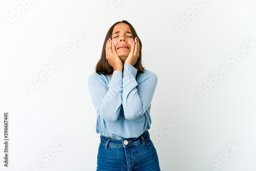 Fototapeta premium Young mixed race woman whining and crying disconsolately.