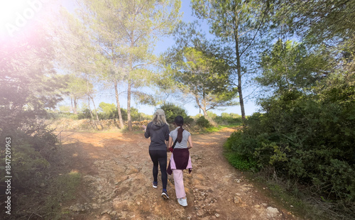 Fototapeta premium Young mother and daughter hiking