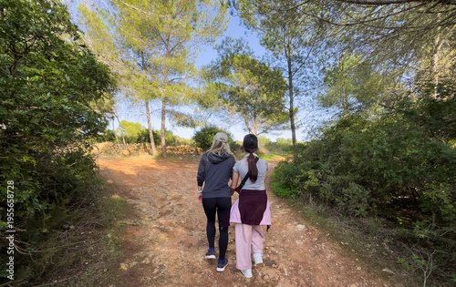 Fototapeta premium Young mother and daughter hiking