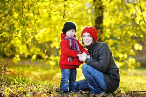 © MNStudio, Fototapeta premium Young mother and her toddler girl in autumn