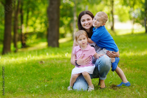 Obraz premium Young mother and her two adorable little kids