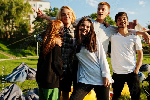 © AS Photo Family, Obraz premium Young multi ethnic group of people in open air cinema.