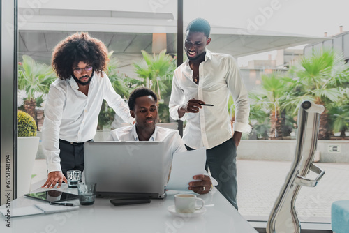 © Renata Hamuda, Obraz premium Young multiethnic business people working together in modern office.