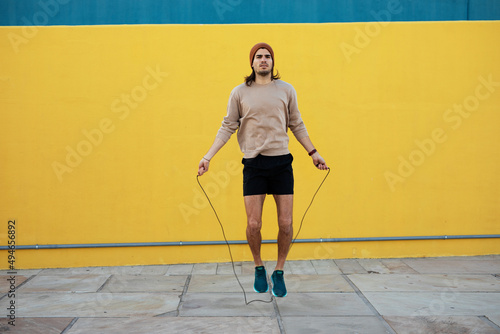 © Jelena, Obraz premium Young muscle man training outside. Fit handsome man doing exercise. Healthy lifestyle