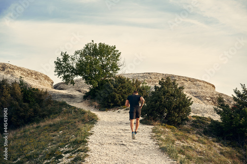 © fotofabrika, Fototapeta premium Young muscular male athlete running up the hill