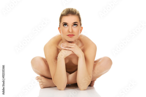 Obraz premium Young naked woman sitting on the floor