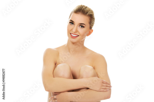 Obraz premium Young naked woman sitting on the floor