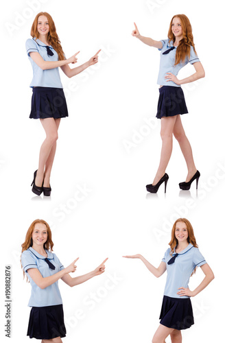 © Elnur, Naklejka premium Young naughty student pressing virtual button isolated on white