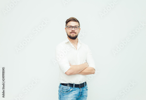 Fototapeta premium Young office worker wearing casual on the grey backround