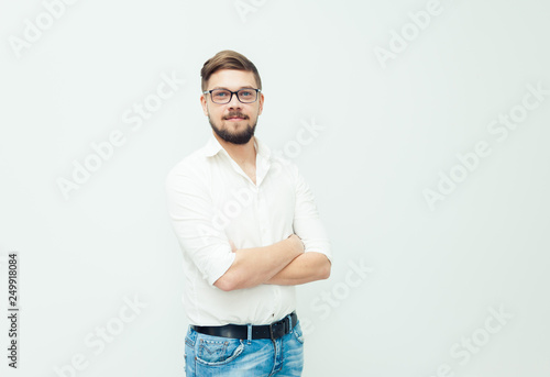 Fototapeta premium Young office worker wearing casual on the grey backround