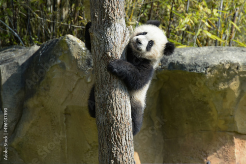 © AUFORT Jérome, Obraz premium young panda climbing a tree