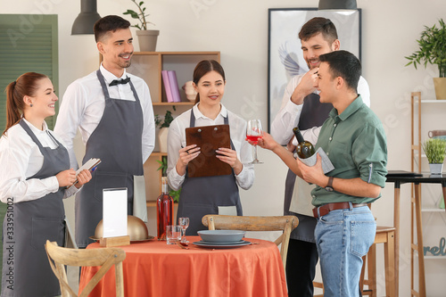 © Pixel-Shot, Fototapeta premium Young people attending professional waiter courses