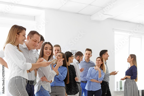 Obraz premium Young people having business training in office