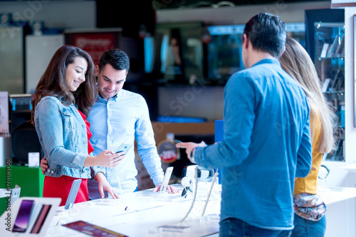 © fotoinfot, Obraz premium young people shopping for latest phone