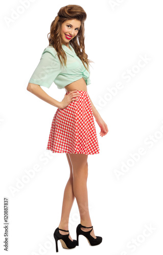 © Boris Riaposov, Naklejka premium Young pinup woman isolated