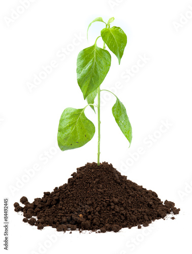 © showcake, Naklejka premium young plant with exposed roots in soil