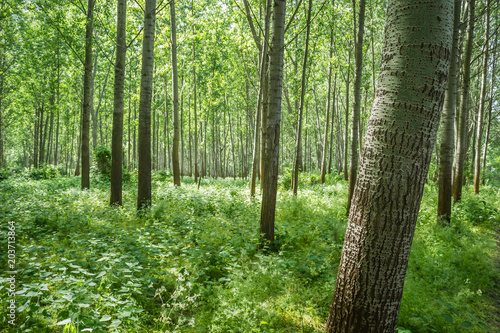© caocao191, Naklejka premium Young poplar forest sunny sun