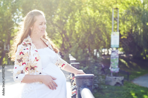 © Сергей Лабутин, Naklejka premium young pregnant woman in the summer park