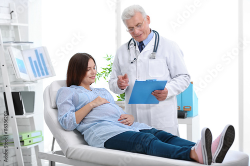 Fototapeta premium Young pregnant woman visiting doctor
