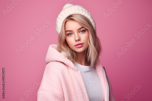 Obraz premium Young pretty blonde girl over isolated colorful background in winter clothes