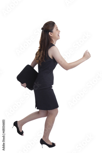 © Mckyartstudio, Fototapeta premium Young Pretty Businesswoman running