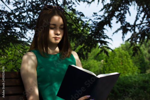 Fototapeta premium Young pretty girl reads a book, outdoor