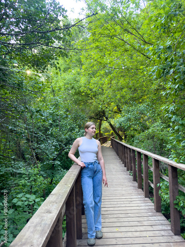 © Mihanfitt, Fototapeta premium young pretty girl/woman walking in the woods
