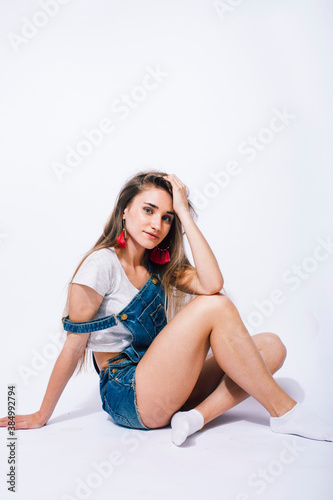 Obraz premium young pretty teenage girl posing cheerful on white background isolated,...